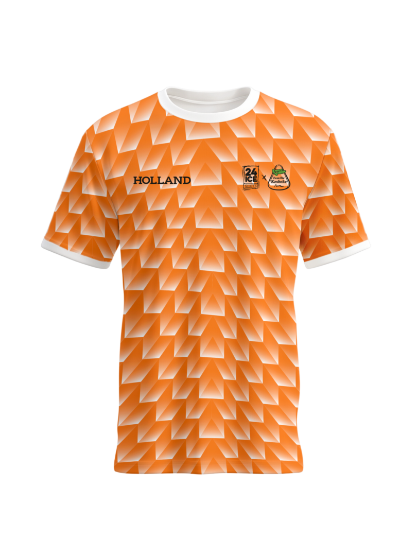 Het shirt is onderdeel van de officiële Kesbeke merchandise en geïnspireerd op het iconische WK 88 shirt Nederland, waardoor het een authentiek fan-item is voor supporters.
